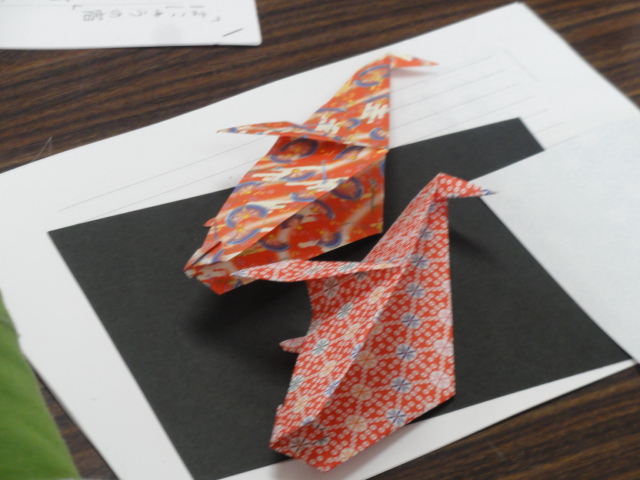カレーの前に折り紙で鯉のぼりの飾り作りをしました。