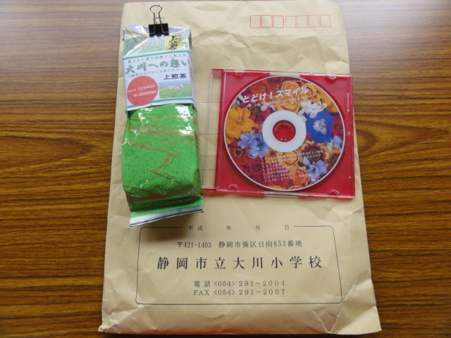 静岡は大川で作られたお茶と、「大川小学校」生徒さんの歌声の入ったCD↑