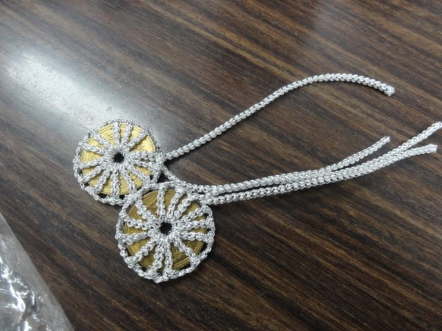 材料は5円玉、金糸、銀糸。