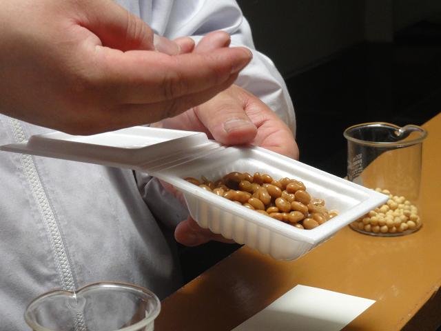 納豆になる前、まだ煮豆の段階のものを試食させていただきました。