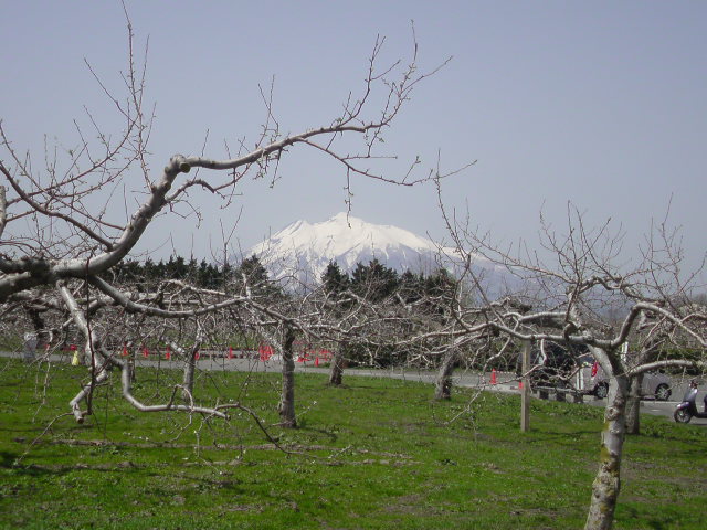 青森りんご公園のりんご畑と岩木山