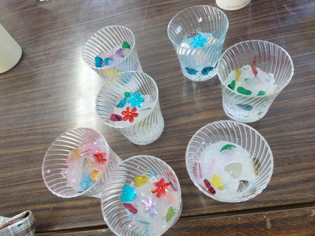 今日のふれあいお茶会では保冷剤で芳香剤作りをしました。