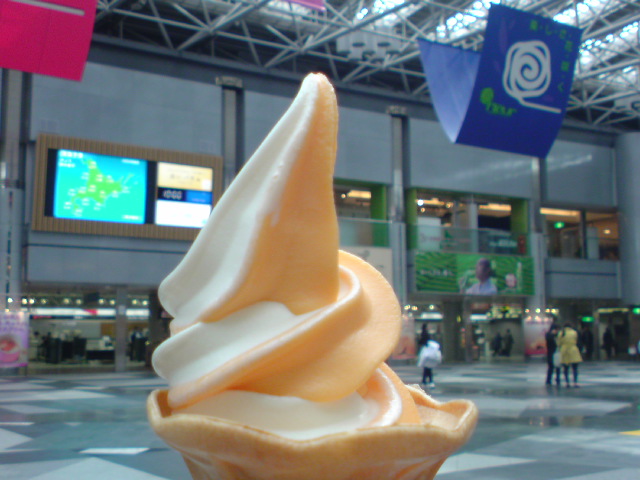 もうひとつは新千歳空港でメロンミックスソフトクリーム。
