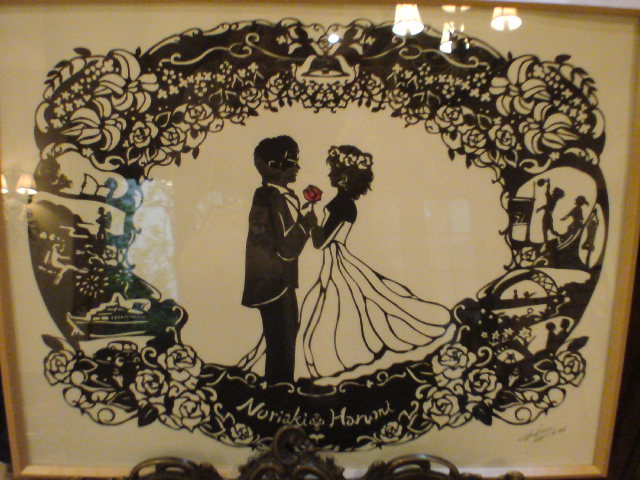 画像は披露宴に出席された切り絵作家の方の即興作品。