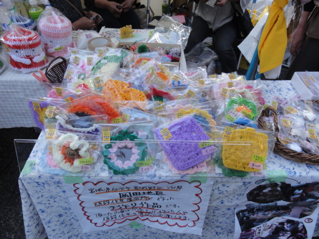 仮設住宅にお住まいの方が作られたグッズ販売コーナーがありました。